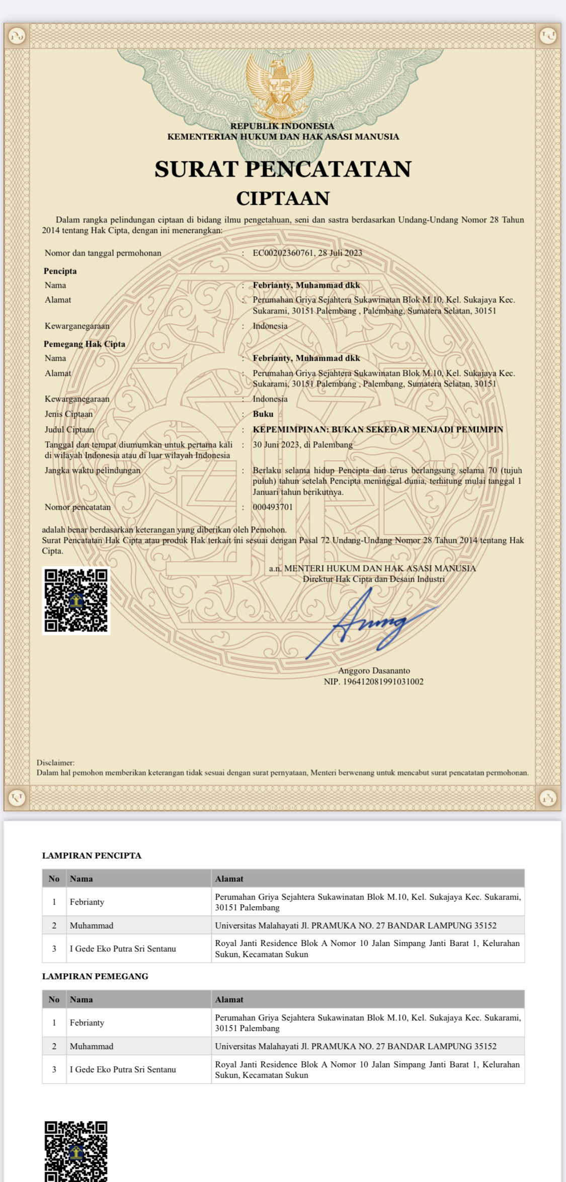 Buku KEPEMIMPINAN: BUKAN SEKEDAR MENJADI PEMIMPIN, ditulis bersama Dr. Febrianty, S.E., M.Si.,Dr. (Cand) Muhammad, S.Kom., MM., dan I Gede Eko Putra Sri Sentanu, S.AP., M.AP., Ph.D. Buku ini terdiri dari 8 bab, antara lain: Menemukan … Read more